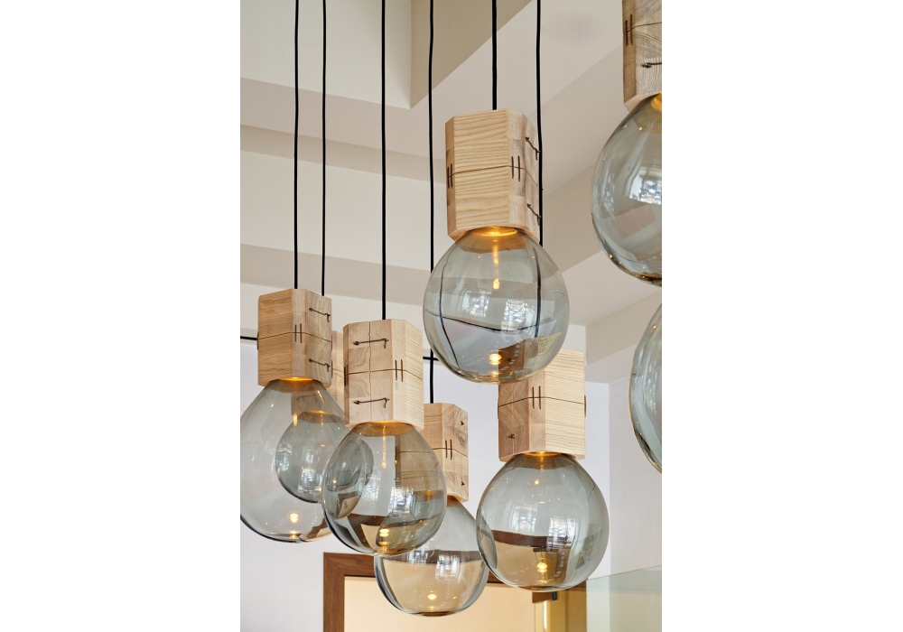 Moulds designed by Jan Plecháč & Henry Wielgus for Lasvit is a beautiful pendant made of hand-blown glass and wood. The energizing effect of this table lamp arises from the contrast of materials used, along with the traditional craft techniques of blowing crystal glass into a beech form.