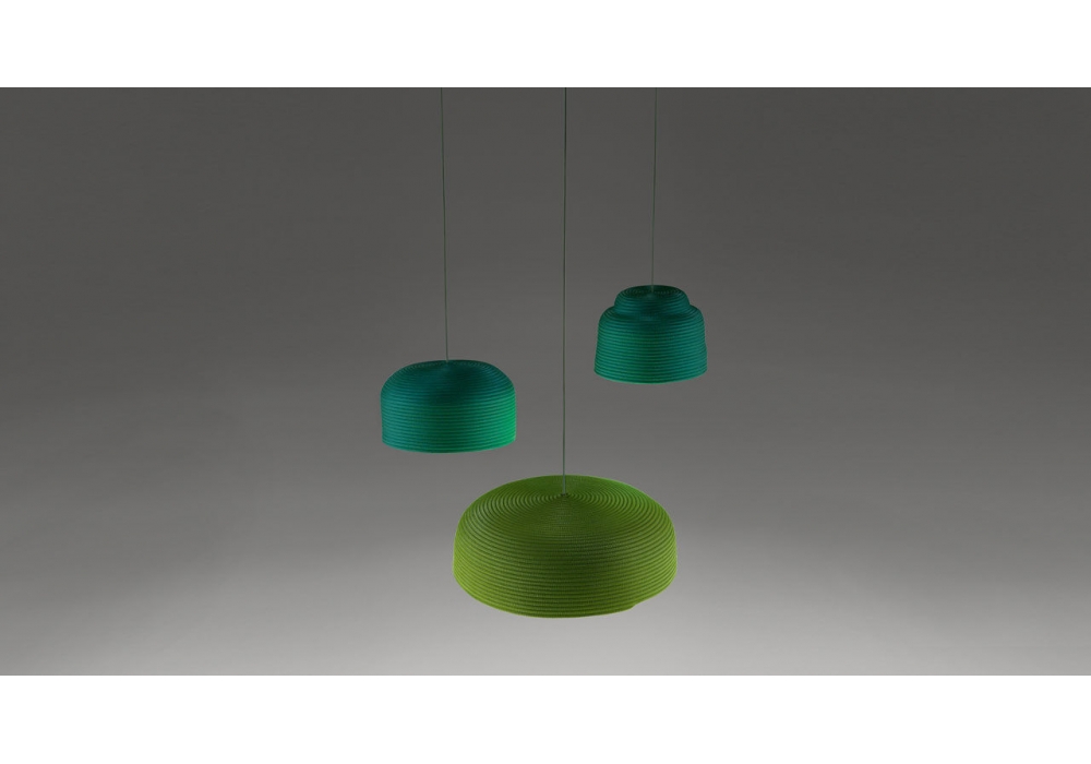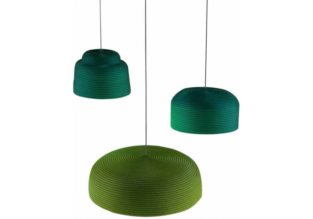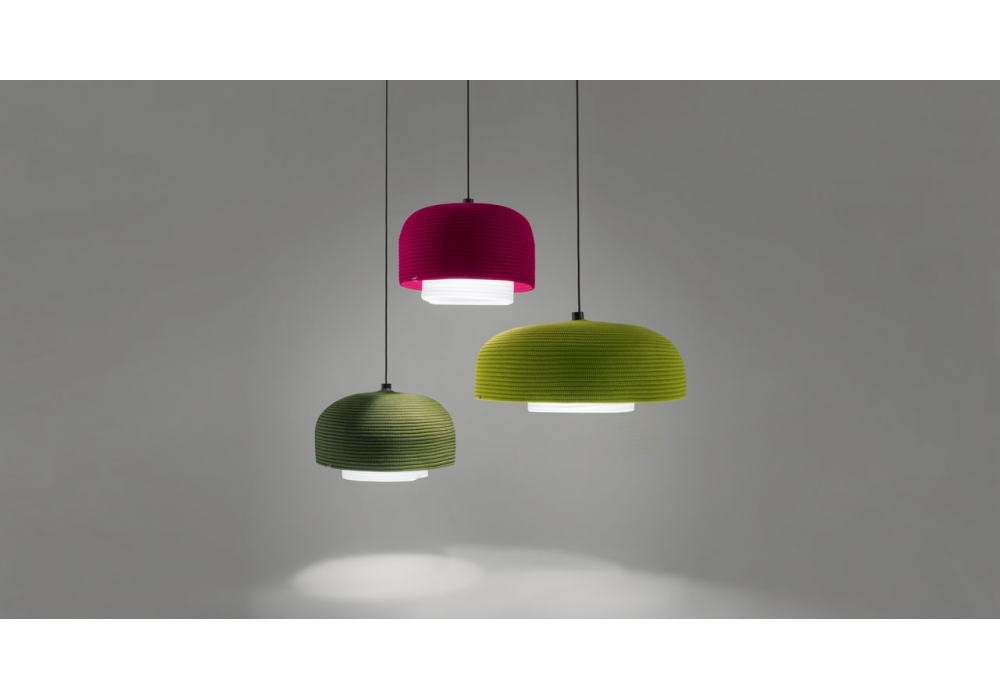 Taiki designed by CRS Paola Lenti is a beautiful suspension lamp with lampshade upholstered by Rope cord in a spiral-like pattern. An additional internal shade, made of a semitransparent polyester cord, enhance the lamp brightness. Taiki is supplied with the suspension cable, the alimentation cable and the ceiling cap. The lamp is LED powered but offers the same warmth and harmony of a traditional lighting bulb. Also available in 3 different types.