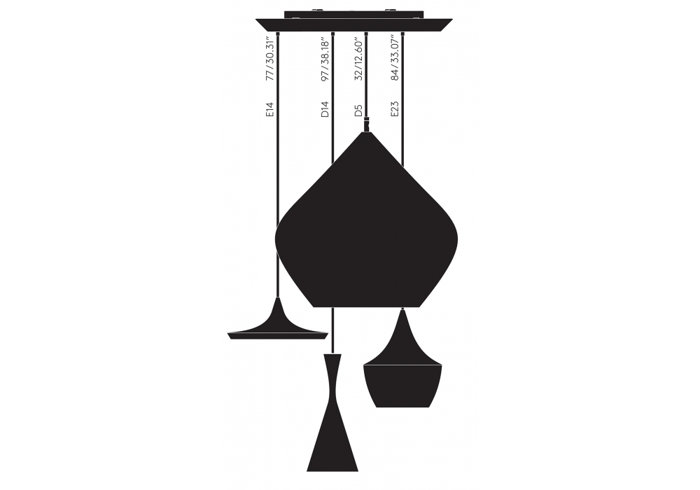 Beat Range Round designed by Tom Dixon is a suspension system composed of four brass lamps. System available in different finishes.