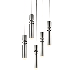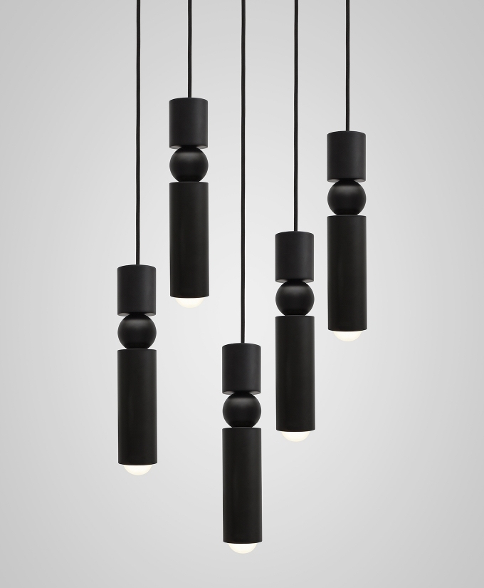 Fulcrum Chandelier 5 Tier designed and produced by Lee Broom is a pendant lamp entirely structured in painted steel in different finishes. The five pendants are in tubular steel and house dimmable LED light sources.