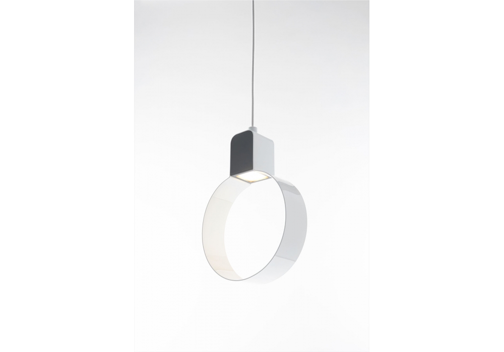 Sonoluce designed by Andrea Brugnera for Zava is a suspension lamp made of painted iron with matte finish, white circle and white rayon cable. Available in different finishes.