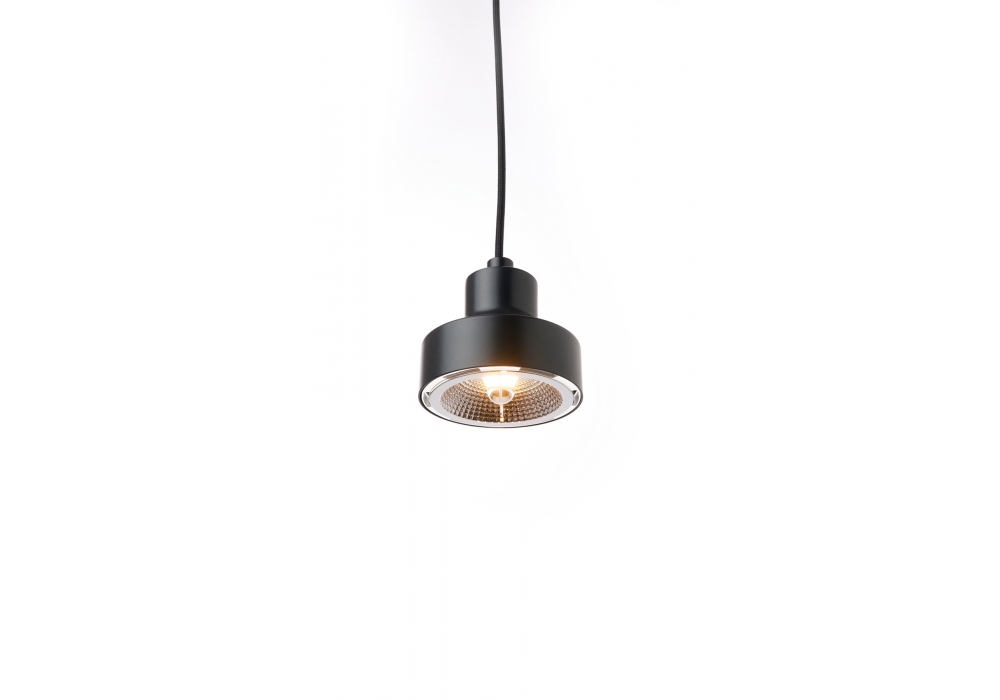 Nox designed by Franco Zavarise for Zava is a suspension lamp made of iron or brass. In the GU10 version the suspension cable is in black rayon, in the LED version it is a black coaxial cable. The driver is included in the ceiling rose. Available in different finishes and versions.