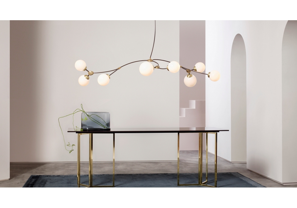 Ivy 8 designed by CTO Lighting is a pendant lamp made in bronze with satin brass details. Diffusers in opal or smoked glass.
