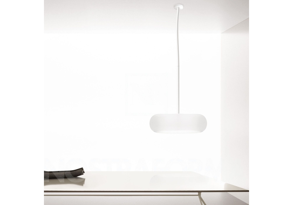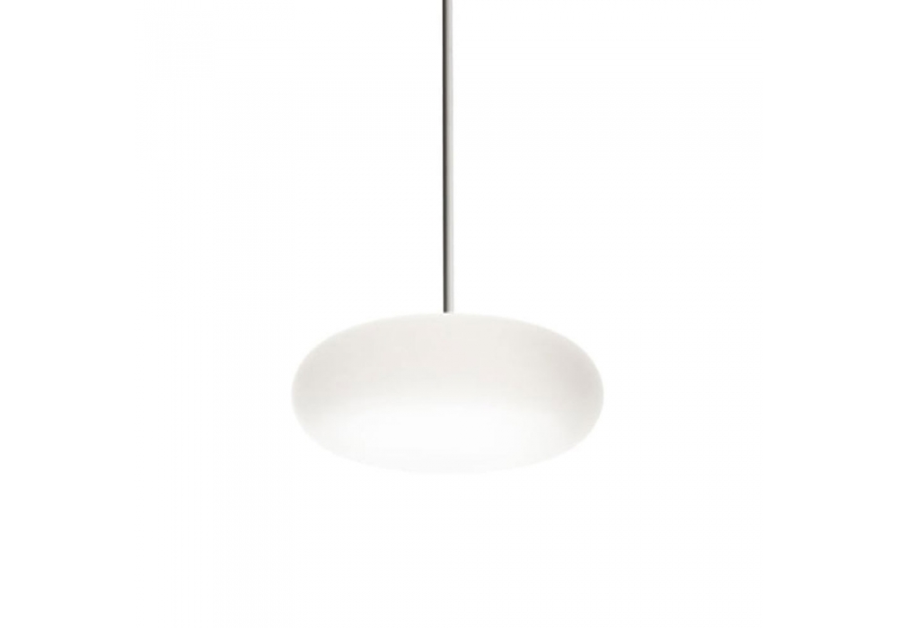 Itka designed by Naoto Fukasawa for Artemide is a pendant lamp with supporting structure in painted steel. The diffuser is made of mouth-blown opal glass and shields an LED light source. Itka is available in sizes.