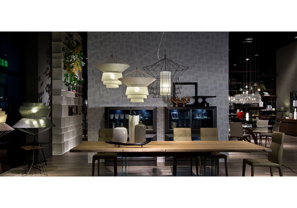 Zeppelin designed by Oriano Favaretto for Cattelan Italia is a pendant lamp with structure in nickel or black painted steel. Lampshade covered in fabric in ivory, brown or black finishes. Available in two dimensions and in the versions 220V or 110V. It is possible to integrate additional 1mt cable. Bulb not included.