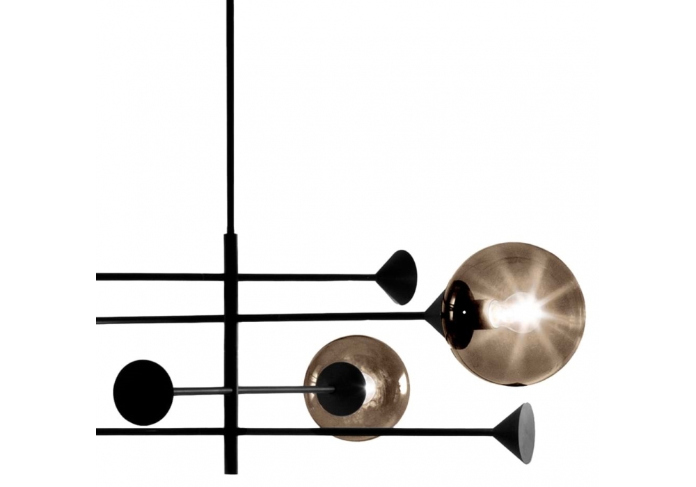 Kendama designed for Massimo Zazzeron & Centro Ricerche Giorgetti is a suspension lamp with burnished metal structure and the spheres in blown glass with Murano workmanship, available in different finishes. Also available in different types. E27 socket.