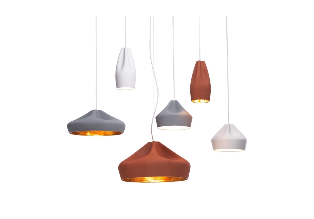 Pleat Box 24 designed by Xavier Mañosa & Mashallah for Marset is a suspension lamp made of ceramic in different finishes, internal part in bright white or gold enamel.