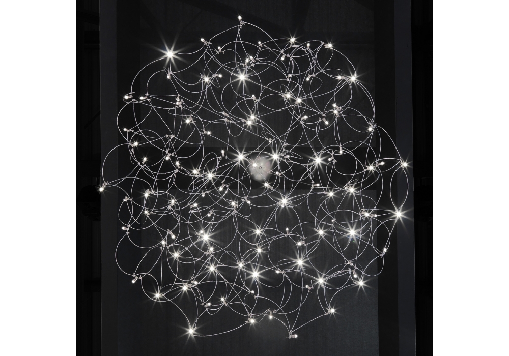 Curled Disc designed by Jan Pauwels for Quasar is a suspension lamp with a lamp body structured by intersecting metal filaments. The light sources are anchored in the filaments and are LED type. on request it is also available in a LED Downlight version. Curled Disc is available in different sizes and finishes.