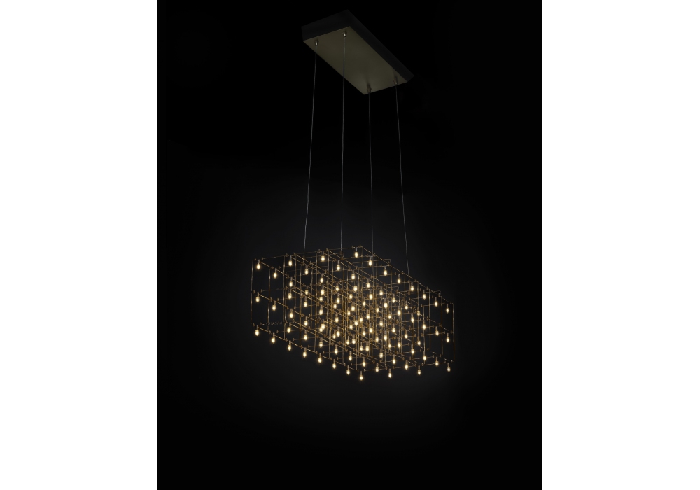 Universe Square designed by Jan Pauwels for Quasar is a pendant lamp with a black rosette, and a quadrangular lamp body structured by a series of tubular rods anchored to each other. The light sources fixed to the supporting structure are of the LED type. Universe is available in different models and finishes.