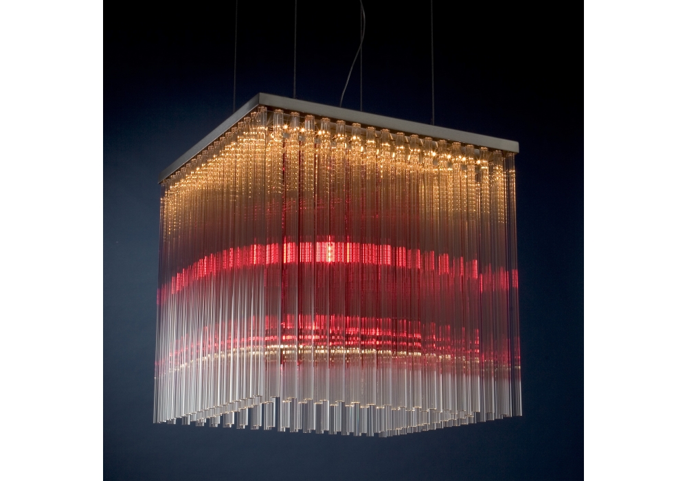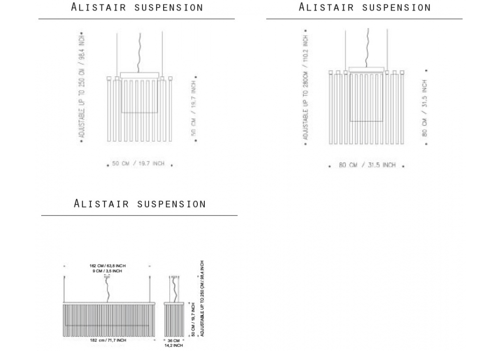 Alistair designed by Edward van Vliet for Quasar is a pendant lamp with quadrangular structure in stainless steel and hanging rods in solid crystal. The light sources used are dimmable LED types (only lamps with E10 socket are supplied). Alistair is available in different models and finishes.