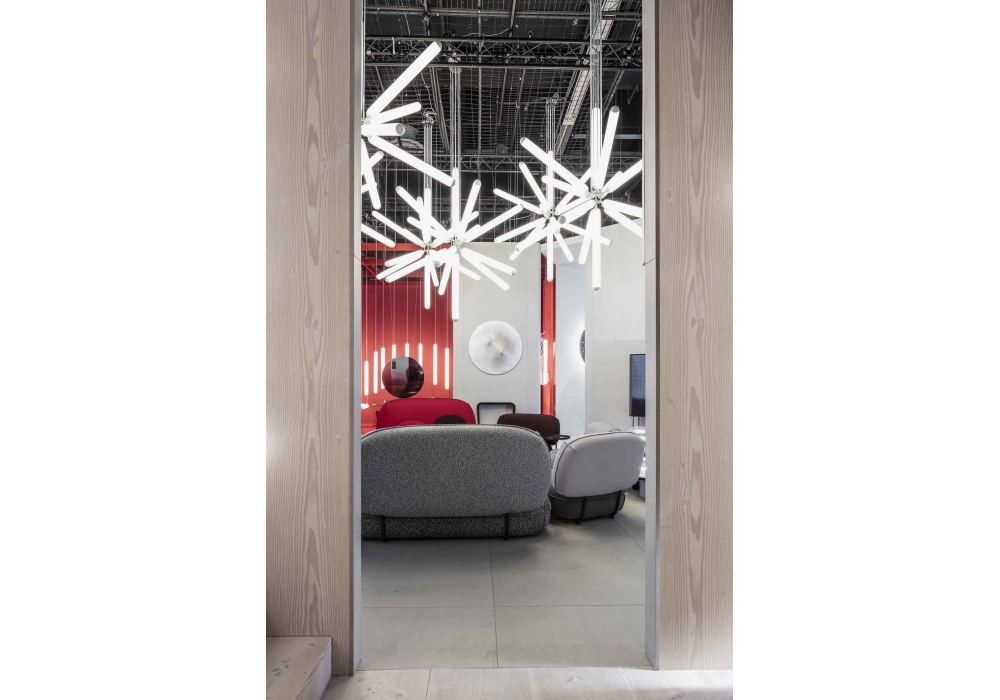 Puro Sparkle designed by Lucie Koldová for Brokis is a pendant lamp in glass and powder coated metal. The multiple tubes radiate outwards in a diffused light and adopt a dimmable LED light source in different versions. Puro Sparkle is available in different sizes and finishes.