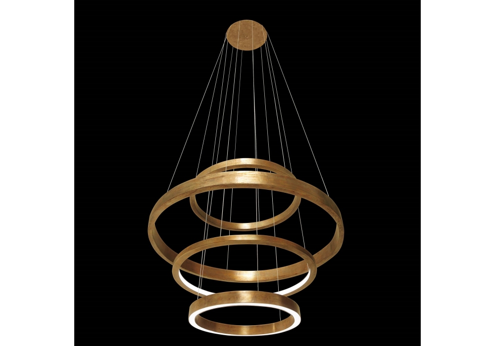 Light Ring designed by Massimo Castagna for Henge is a pendant lamp structured by multiple suspended concentric circles in painted metal. The light sources are LED with a dimmable system. Light Ring is available in different finishes, types, controls and light source gradations.