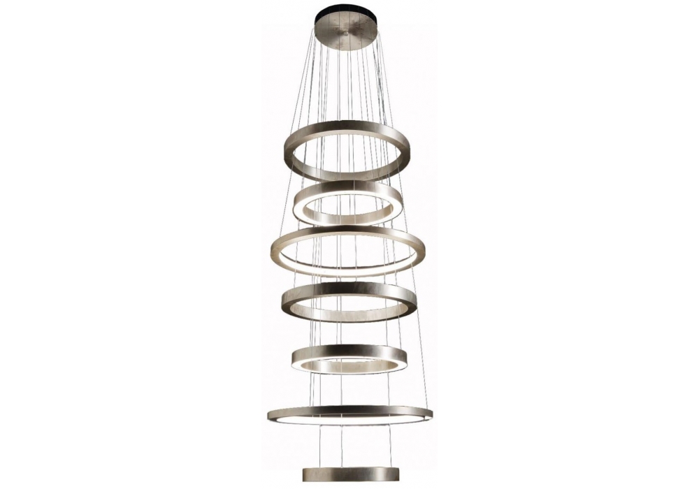 Light Ring Slim XXL designed by Massimo Castagna for Henge is a pendant lamp structured by multiple suspended concentric circles in painted metal. The light sources are LED with a dimmable system. Light Ring is available in different finishes, controls and light source gradations.