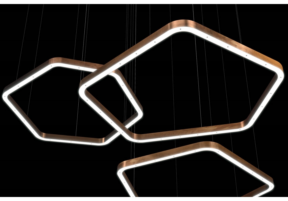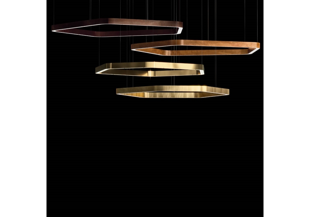 Light Ring Horizontal Polygonal designed by Massimo Castagna for Henge is a polygonal pendant lamp structured in painted metal. The light source used is LED with dimmability system. Light Ring Horizontal Polygonal is available in different sizes, finishes, light source gradations and dimmability.