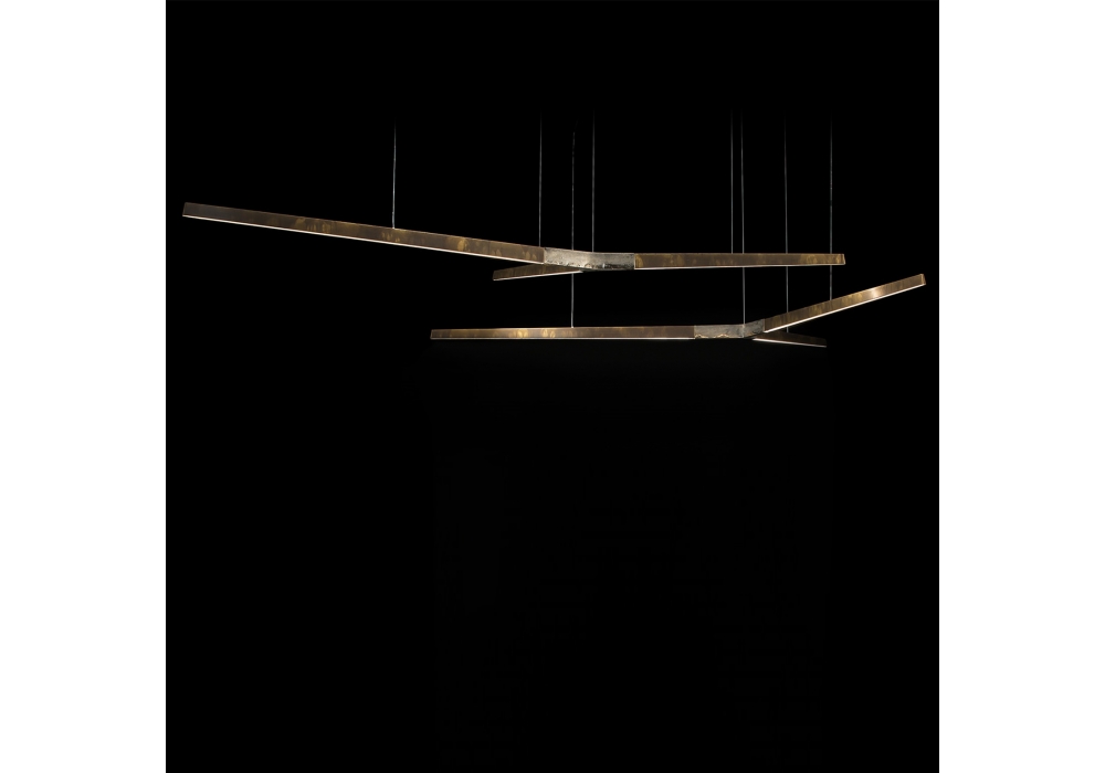 Starlight Horizontal designed by Massimo Castagna for Henge is a suspension lamp structured by three painted metal arms arranged in a Y shape. The light sources used are LED with a dimmable system. Starlight is available in different finishes, sizes, gradations and light source controls.