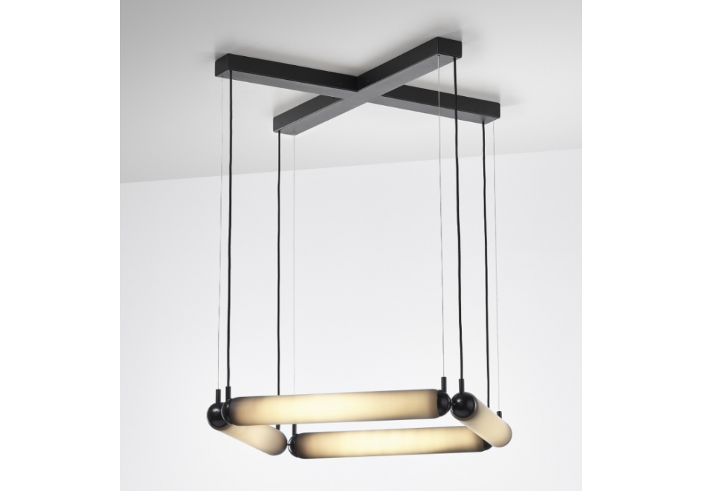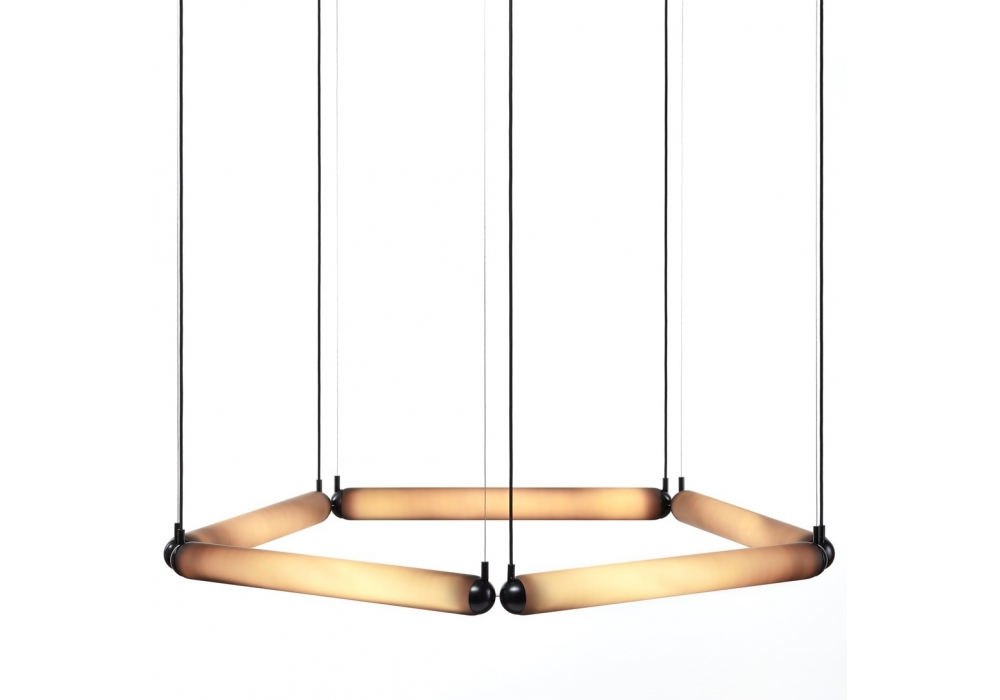 Puro Contour designed by Lucie Koldová for Brokis is a pendant lamp structured by tubular elements in opal glass and metal. The light source used is of the LED dimmable type in different gradations and versions. Puro Contour is available in different models and finishes.