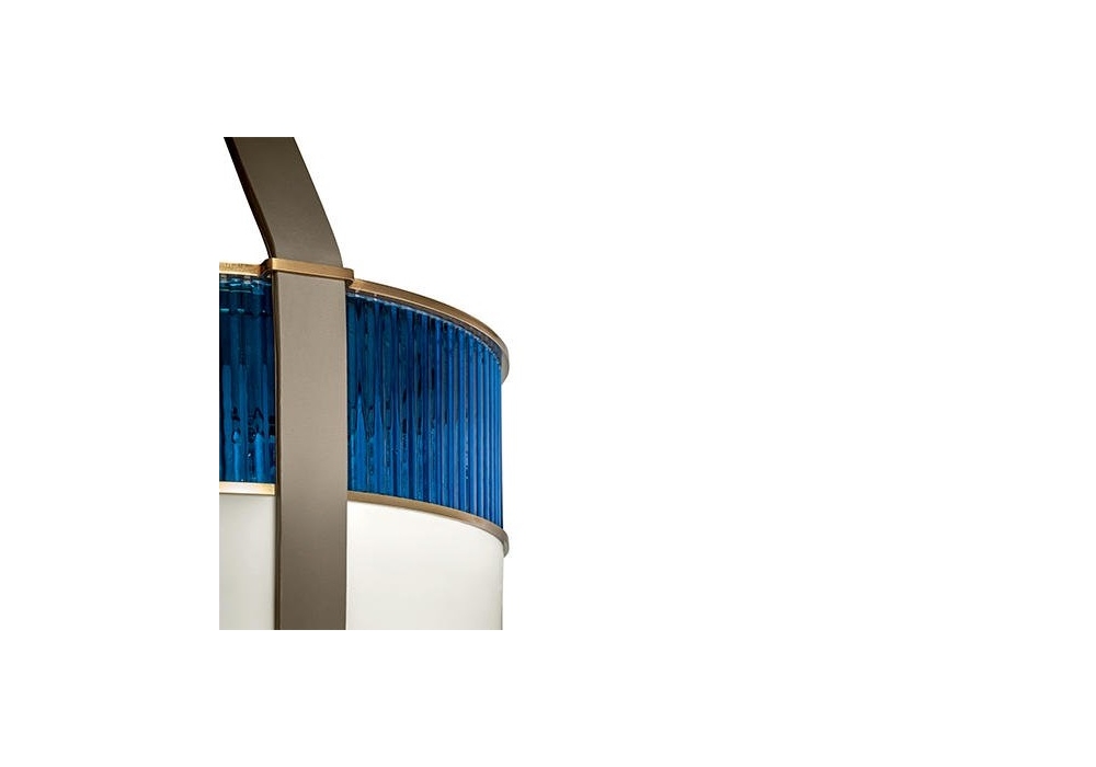 Xi designed by Neri & Hu for Poltrona Frau is an XL suspension lamp made out of two pieces of blown glass: a transparent, ribbed one available in many finishes at the top and a finished pearlcoloured one at the bottom. The lamp is suspended thanks to a Saddle Extra leather band available in two colours. The glass parts of the Xi lamps are unique pieces created by master glass blowing artisans of Venice with the use of coloured glass in paste.