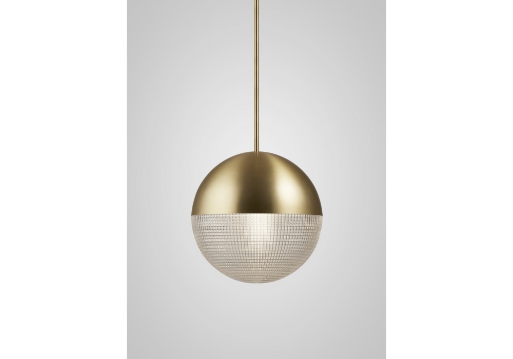 Lens Flair designed and produced by Lee Broom is a pendant lamp with a spherical shape structured in painted steel and plastic material. The diffuser is in transparent polycarbonate and screens a dimmable LED light source. Lens Flair is available in different finishes.