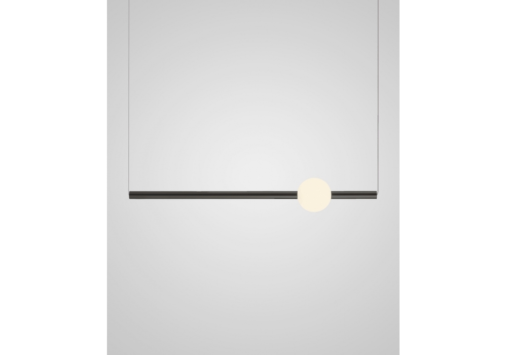 Orion Globe Light produced and signed by Lee Broom is a pendant lamp made with a tubular steel rod and an opal glass sphere. The light source adopted is of the dimmable LED type. Orion Globe Light is available in different finishes.