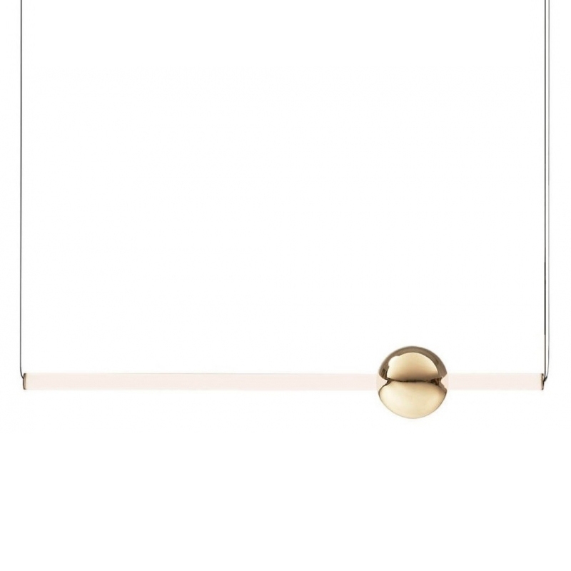 Orion Tube Light produced and signed by Lee Broom is a pendant lamp made with a tubular rod in opal glass and a steel sphere. The light source adopted is of the dimmable LED type. Orion Globe Light is available in different finishes.
