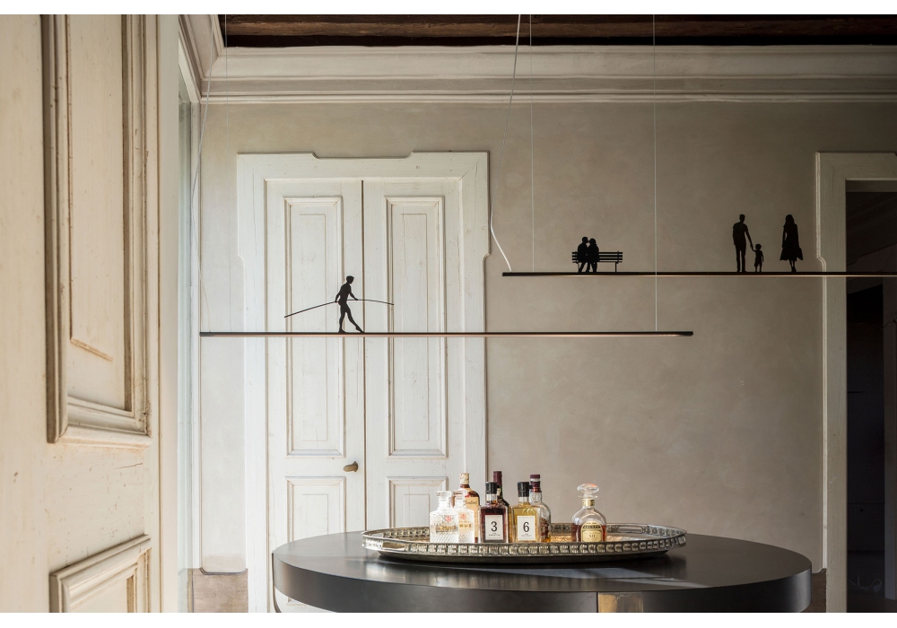 Phil designed by Uto Balmoral for Mogg is a suspension lamp with LED lighting and black metal frame. Available 3 different decorative kits that can be positioned at will along the bar. Electric cable and steel cable in length 2.5 m.