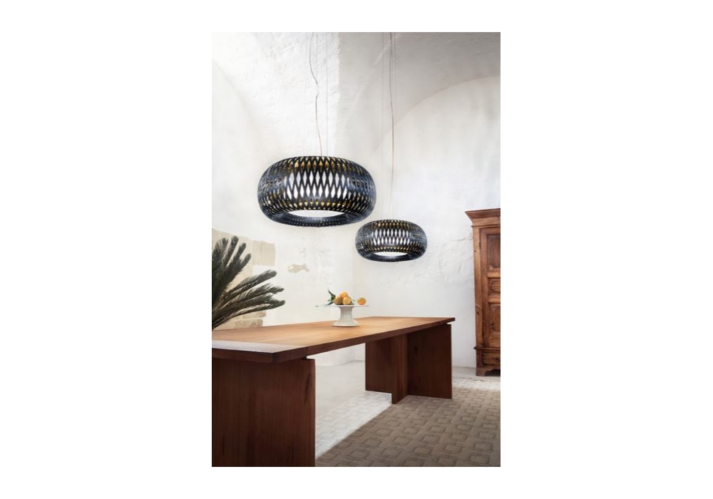 Kalatos designed by Elisa Giovannoni for Slamp is a pendant lamp in metallic polycarbonate or Lentiflex® and polycarbonate. The light source used is of the dimmable filament LED type. Kalatos is available in different finishes.