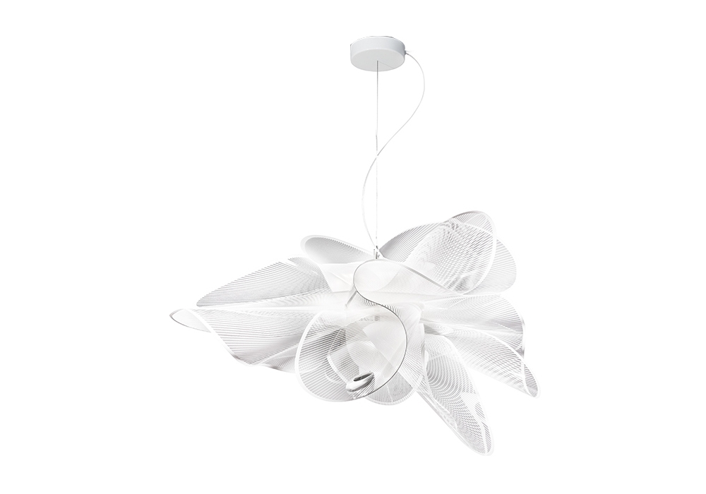 La Belle Étoile designed by Adriano Rachele for Slamp is a suspension lamp entirely structured in Cristalflex® in different finishes. The light source used is of the dimmable LED type. La Belle Étoile is available in different sizes.