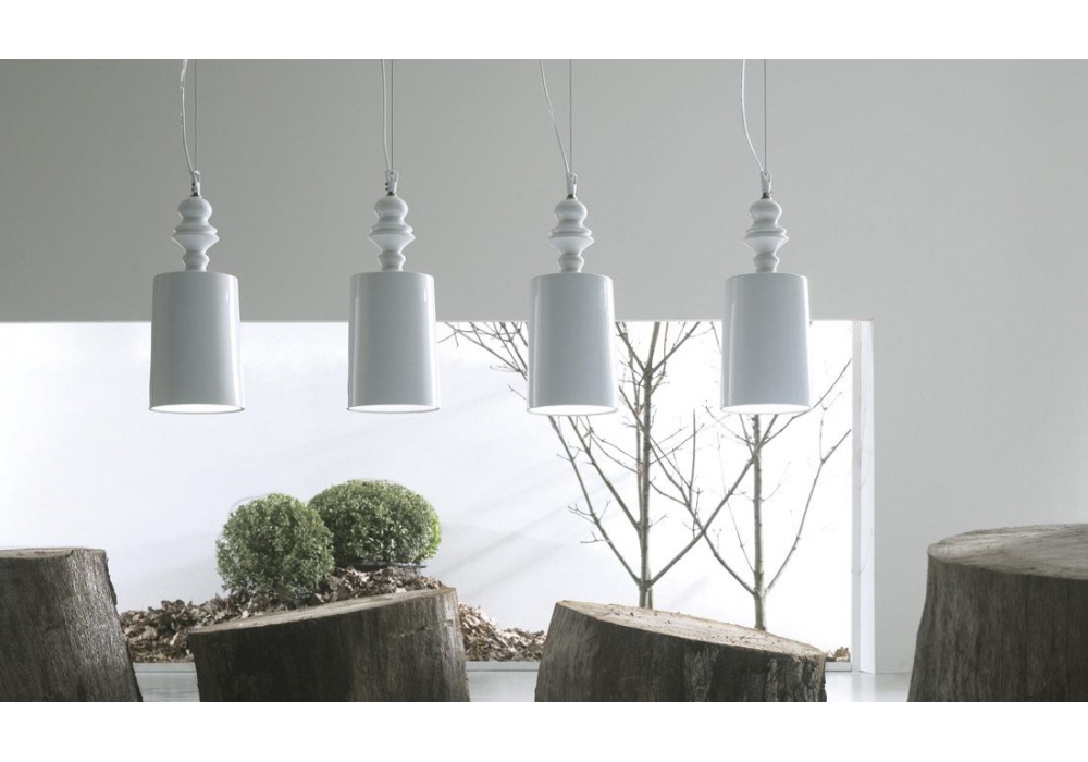 Alibababy designed by Matteo Ugolini for Karman is a pendant lamp with glossy white ceramic shade and glossy white metal ceiling. Bulb not included.