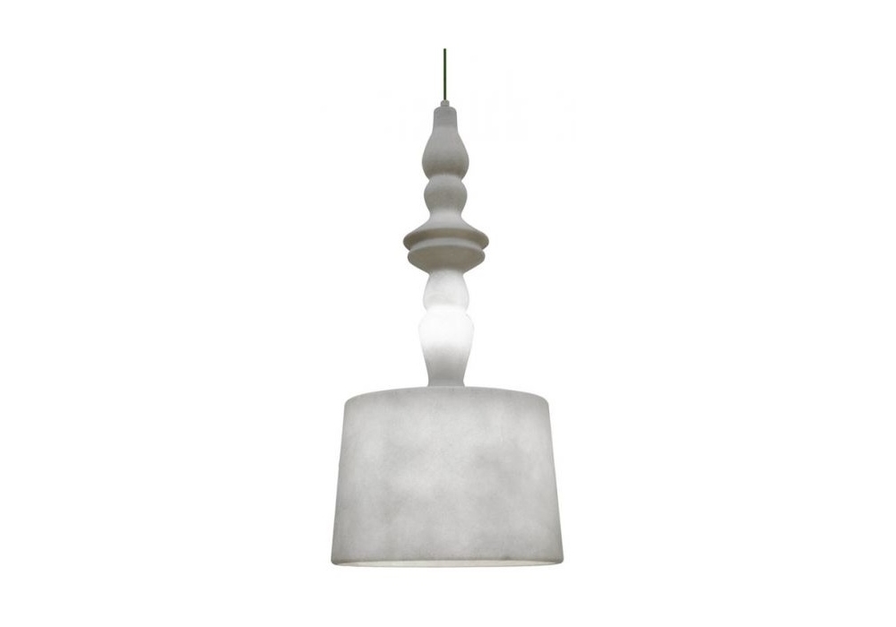 Alibabig designed by Matteo Ugolini for Karman is a suspension lamp in white fiberglass with a glossy white metal rosette.
