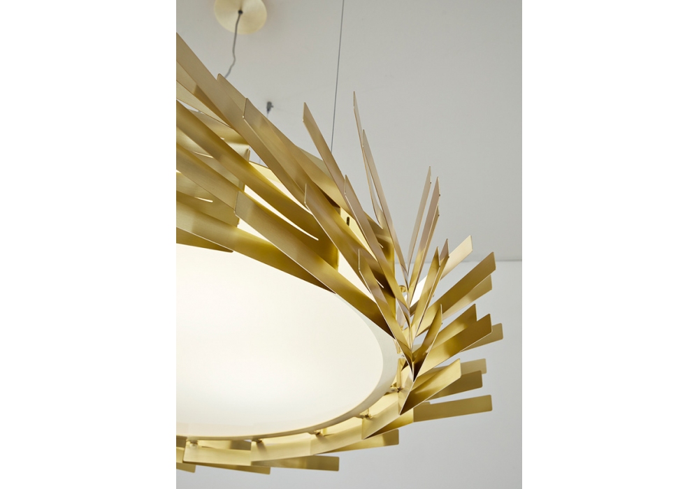 Jack 7380/1 designed by Olga Engel for MMLampadari is a suspension lamp with kinetic metal structure, available in three variants.