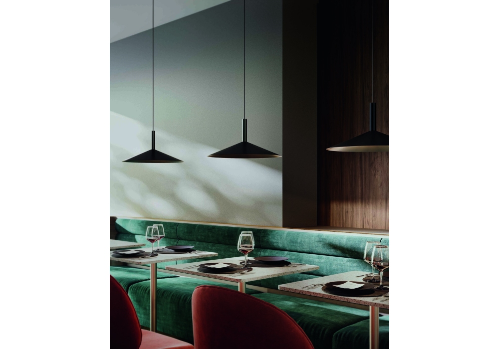 Altura designed by Sommella & Anonima Luci for Penta is a pendant lamp with lampshade in painted aluminum with details in satin silver metal. The ceiling rose is in metal in the matt black, matt gold and matt white finishes. The light source is of the dimmable LED type in different shades of light. Altura is available in different finishes.