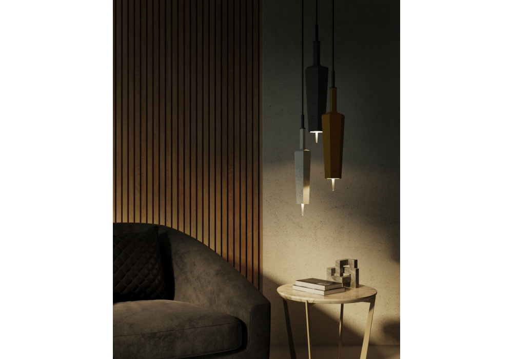 Sop designed by Umberto Asnago is a pendant lamp made of colored concrete in various finishes. The light source is of the LED type in different dimmable versions. Sop is available in different sizes.