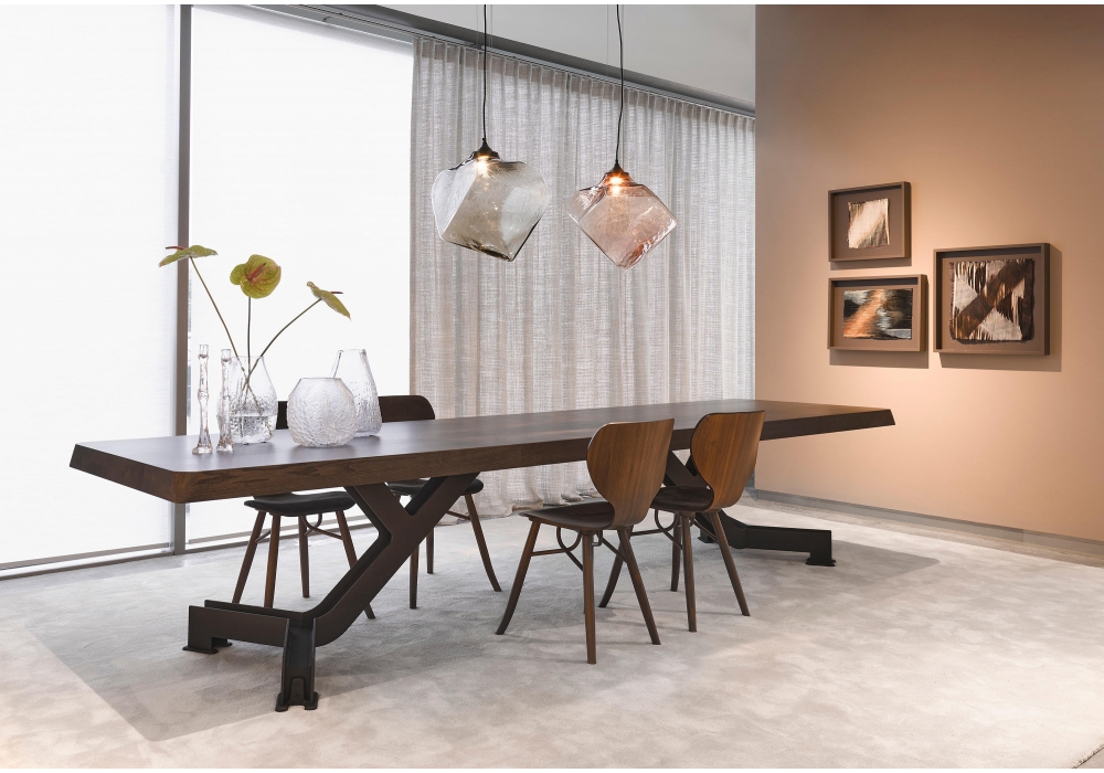 Cubo designed by Joeny Veldhuyzen Van Zanten for Linteloo is a pendant lamp with blown glass diffuser available in four colors.