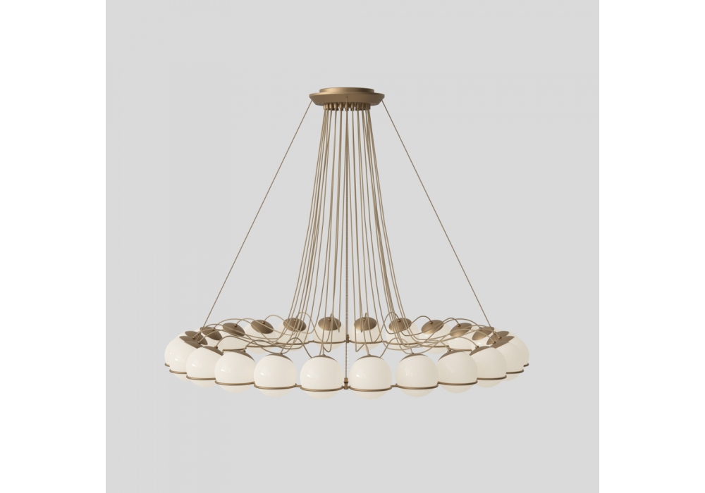 Model 2109/24/14 designed by Gino Sarfatti for Astep is a lamp with opal glass diffuser and steel structure, available in two finishes (black or champagne).