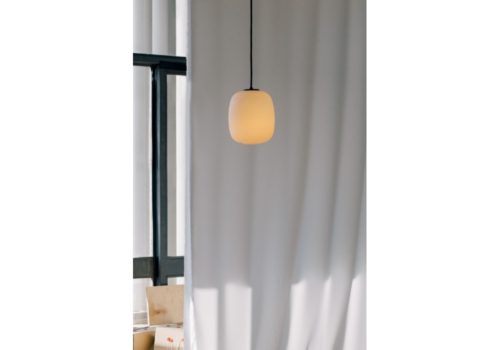 Globo Cestita designed by Miguel Milá for Santa&Cole is a pendant lamp made with white opal glass lampshade and black metal circular canopy.