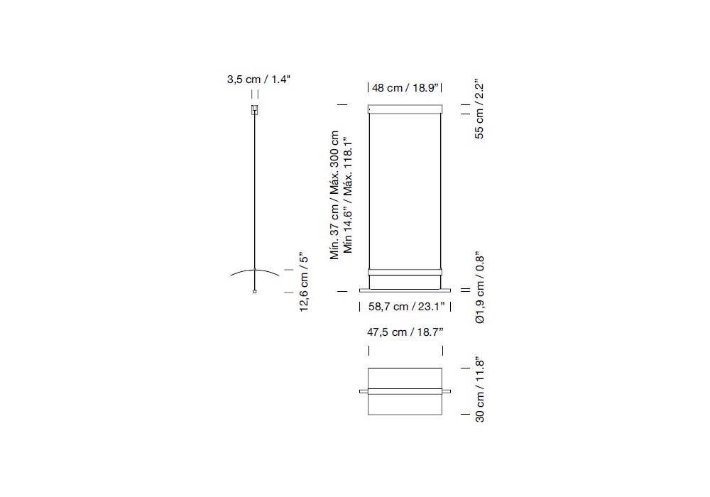 | Dimensions | 58.7 x 30 x H Min. 37 - Max. 300 cm |