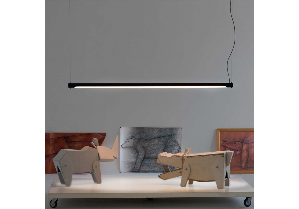 Calabrone designed by Emiliana Martinelli for Martinelli Luce is a pendant lamp structured in black painted tubular aluminum. The light source adopted is of the integrated LED type.