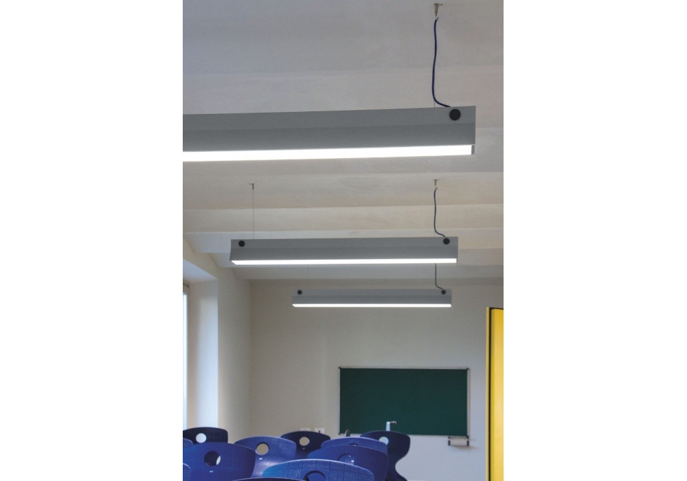 Sound designed by Emiliana Martinelli for Martinelli Luce is a pendant lamp with quadrangular structure in gray painted aluminum with dark gray details. The light source adopted is of the integrated dimmable LED type.