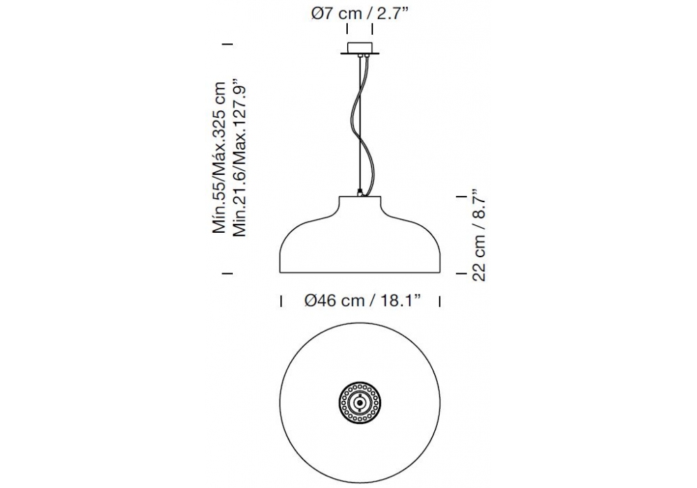 | Dimensions | Ø46 x H Min. 55 - Max. 325 cm |