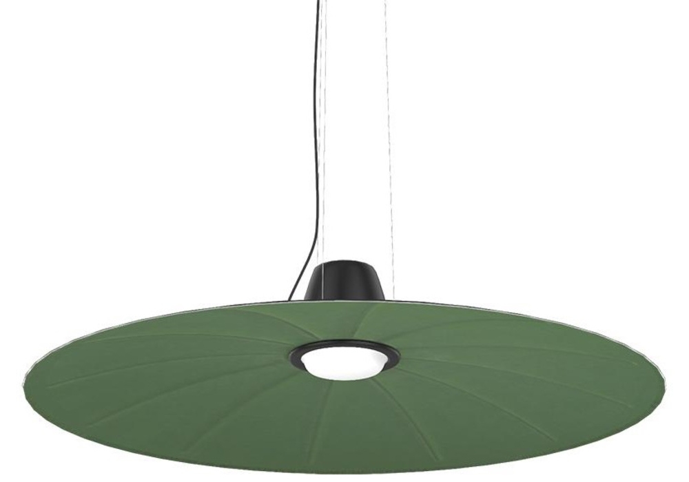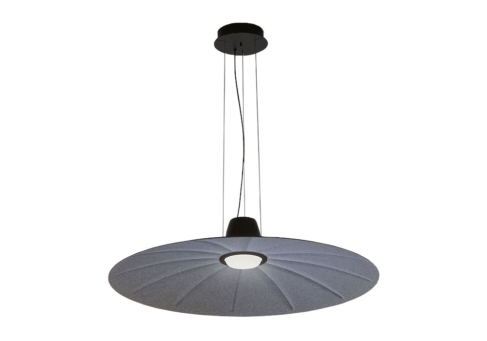 Lent designed by Yonoh Studio Creative for Martinelli Luce is a pendant lamp with a circular shape structured by the combination of sound-absorbing material and fabric. The central spot adopts a dimmable LED light source. Lent is available in different finishes and versions.