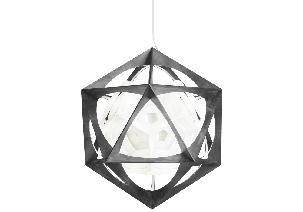 OE Quasi Light designed by Olafur Eliasson for Louis Poulsen is a polygonal pendant lamp with dark aluminum painted aluminum frame. The diffuser is in polycarbonate and shields a dimmable LED light source in different versions and light gradations.