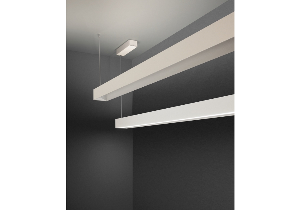 Tru Roberto Paoli for Nemo is a pendant lamp with double emission made of painted extruded aluminum. The diffusers are in opal methacrylate and screen a dimmable LED light source in different shades of light. Tru is available in different finishes and versions.