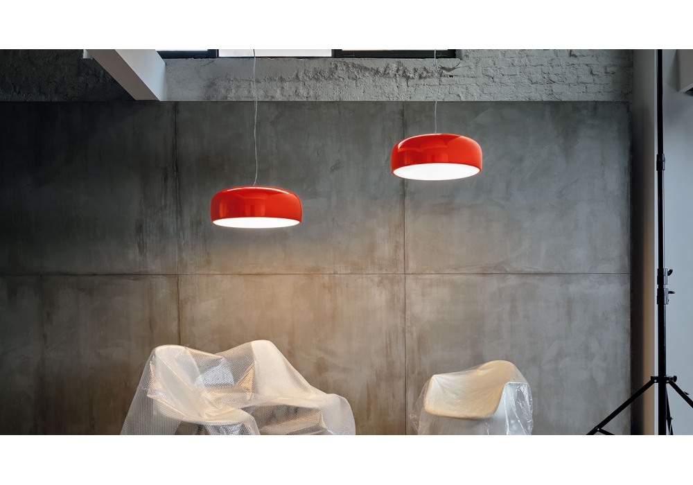 Smithfield Pro designed by Jasper Morrison for Flos is a pendant lamp with direct light. Aluminum body. Injection-molded diffuser in opal methacrylate. Steel ceiling attachment with steel suspension cable. 5-pole electric cable with double insulation in PTFE (fluoropolymer). Push or DALI dimmer included. Bulb included.