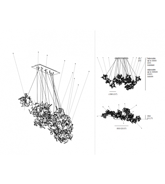 44 designed by Omer Arbel for Bocci is a suspension lamp with different lamp bodies with an abstract shape in aluminum. The diffuser with spherical structure encloses a LED light source. 44 is available in different versions.