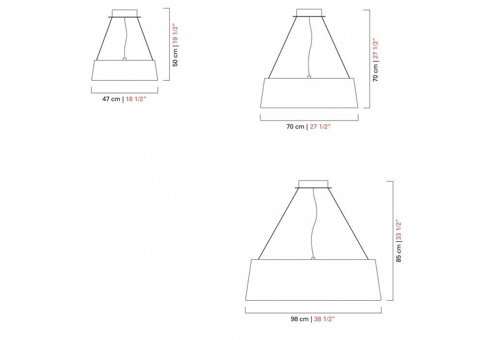 | Dimensions | Ø 47 x H 50 cm; Ø 70 x H 70 cm; Ø 98 x H 85 cm. |