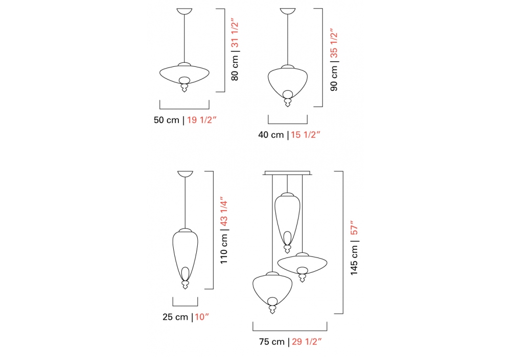 | Dimensions | Ø 50 x H 80 cm; Ø 40 x H 90 cm; Ø 25 x H 110 cm; Ø 75 x H 245 cm. |