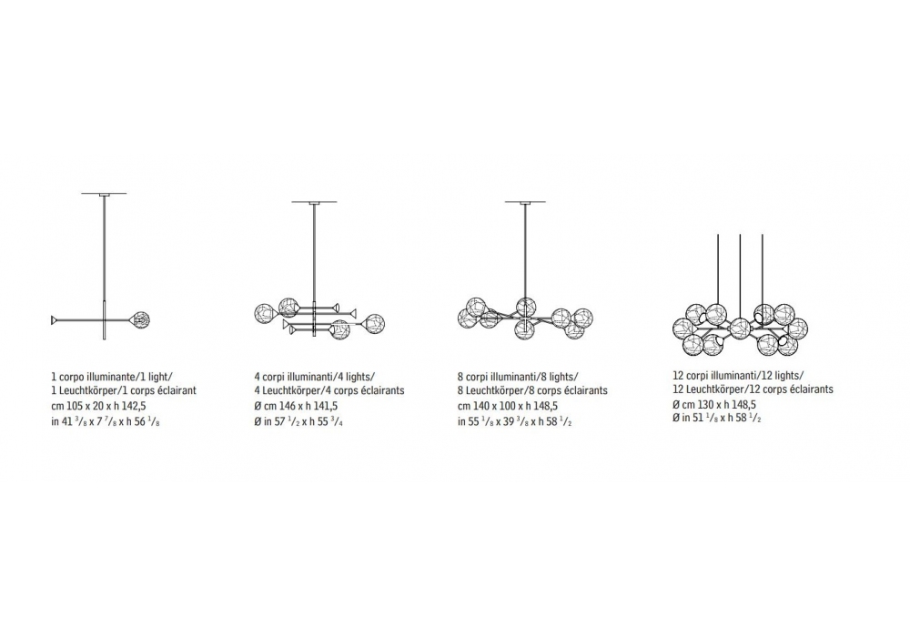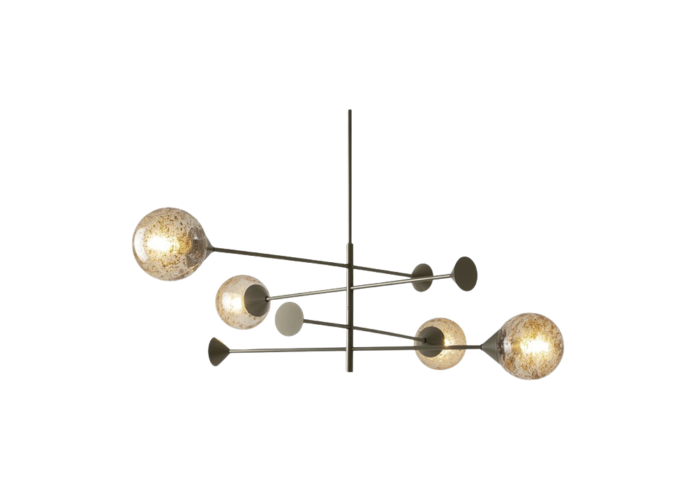 New Kendama designed by Massimo Zazzeron & Centro Ricerche Giorgetti is a suspension lamp with structure in burnished metal and spherical diffusers in blown glass with Muranese processing, encased with bronze-colored aluminum and ferrous oxides. Available in different models and finishes.