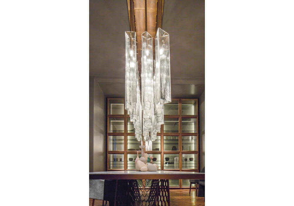 Airlight designed by Massimo Castagna for Henge is a pendant lamp composed of metal structure and transparent or grey Murano glass polyhedral canes. Available in different compositions.