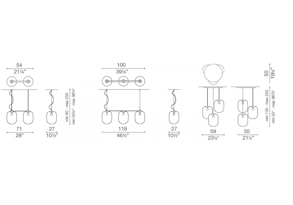 Arya designed by Giulio Cappellini & Antonio Facco for Cappellini is a pendant system made with ceiling attachment in matt black painted metal and matt colored glass diffusers. Available in different finishes and models.