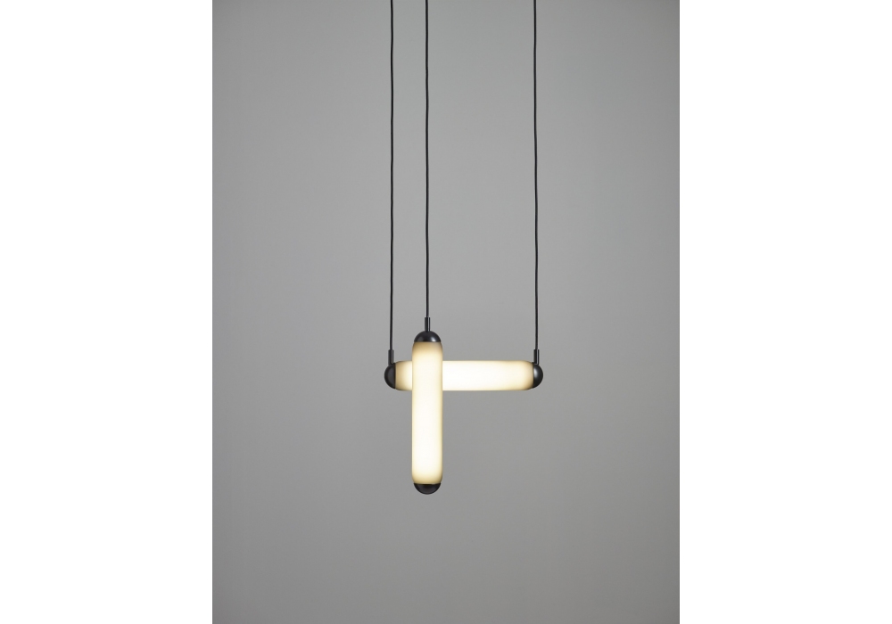 Puro Solo Vertical designed by Lucie Koldova for Brokis is a pendant lamp with a cylindrical lampshade made of blown glass with an externally acid-etched surface. It uses a dimmable LED light source. Glass ceiling rose in white or black finish and lamp body in the same color.